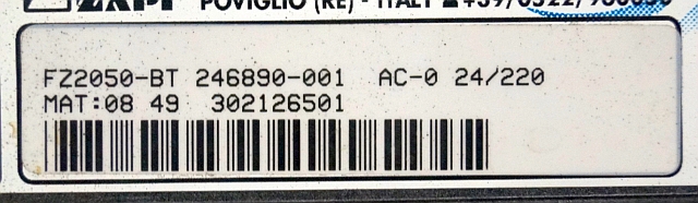 BT 246890-001 | Controller Zapi AC evolution 0 FZ2050-BT AC-0 24/220 sn. 08 49 302126501 from SWE080L year 2009