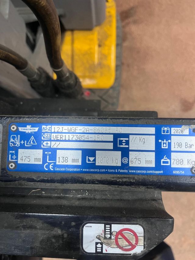 Cascade 12J-WGF-2A-8605 R0 | capacity 1070 kg on 675mm minimum width 390mm maximum width 1785mm side shift weight 77 kg year 2020