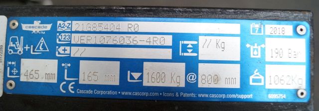 Cascade unknown | White goods clamb 21G85404 R0 sn. VER1076036-4R0 1600 kg on 800mm cariage width 1.61 mtr Plates 1.37 width 1,18 mtr high FEM 2-3-4 weight 1062 kg year 2018
