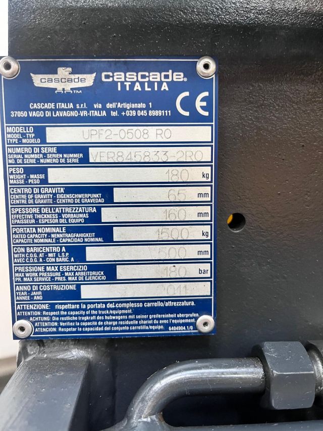 Cascade UPF2-0508RO | Forkpositioner Fem2B Capacity 1500 kg at 500mm Total width 850mm Minimum width 535mm Maximum width 1610mm Year 2011 sn. VER845833-2RO