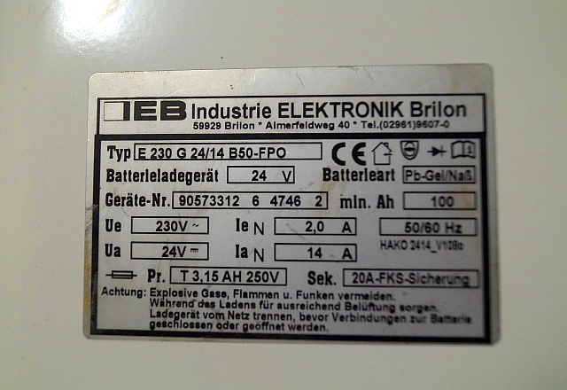 IEB charger E230 G 24/14 B50-FP0 W 220V 50/60Hz from B650/07 year 2015 sn. 90573312 6 4746 2