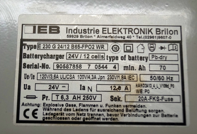IEB charger E230 G 24/12 B65-FP02 WR 24V12,6A 220V 50/60Hz from B650/07 year 2015 sn. 90587858 7 0544 4