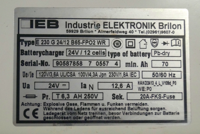 IEB charger E230 G 24/12 B65-FP02 WR 24V12,6A 220V 50/60Hz from B650/07 year 2015 sn. 90587858 70557 4