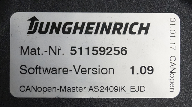 Jungheinrich 51037594 | Rij/hef regeling Drive/lift controller AS2409 i k index B Sw. 1,09 51159256 sn. S12X00069862 from EJE220
