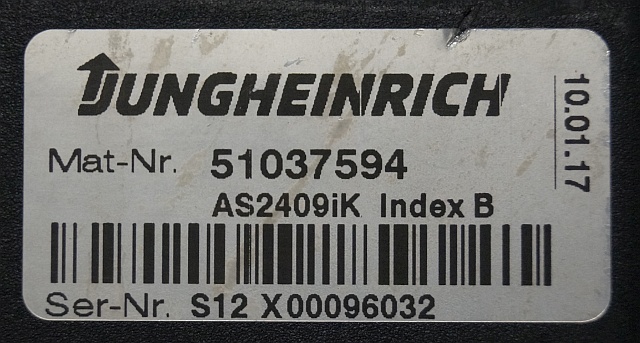Jungheinrich 51037594 | Rij/hef regeling Drive/lift controller AS2409 i k index B Sw. 1,28 51075490 from EJE220 year 2017 sn. S12X 00096032