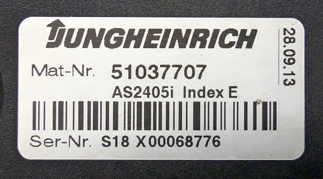 Jungheinrich 51037707 | Rij regeling driving controller AS2405i index E Sw. 1,28 51062370 sn. S18X00068776 from EJE120 year 2013