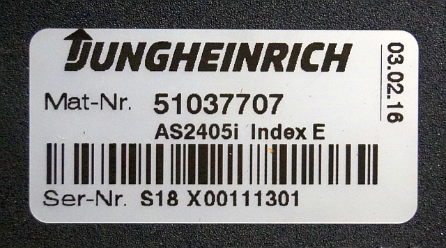 Jungheinrich 51037707 | Rij regeling driving controller AS2405i index E Sw. 1,31 51062370 sn. S18X00111301 from EJE C20 year 2016
