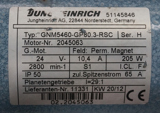 Jungheinrich 51145846 | Steering motor 24V type GNM5460-GP80.3 sn 2045063