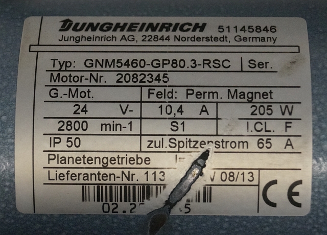 Jungheinrich 51145846 | Steeringmotor 24V type GNM5460 GP80,3 RSC Steering sensor 52037950 year 2013 motor nr. 2082345
