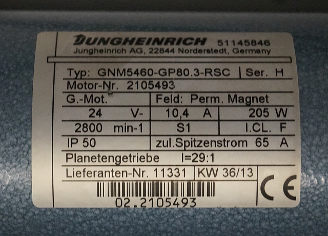 Jungheinrich 51145846 | Steeringmotor 24V type GNM5460 GP80,3 RSC Steering sensor 52037950 year 2013 motor nr. 2105493