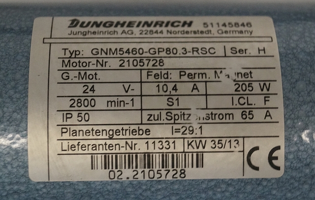 Jungheinrich 51145846 | Steeringmotor 24V type GNM5460 GP80,3 RSC Steering sensor 52037950 year 2013 motor nr. 2105720