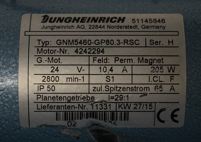 Jungheinrich 51145846 | Steeringmotor 24V type GNM5460 GP80,3 RSC Steering sensor 52037950 year 2015 motor nr. 4242294