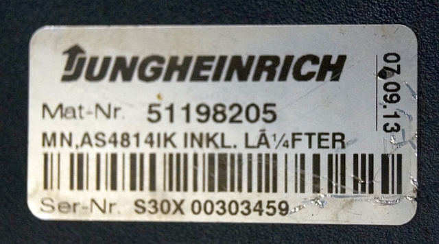 Jungheinrich 51159321 | Rij/hef regeling drive/lifting controller AS4814Ik Index A 51198205 inkl. LA1/4FTER sn. S1EX00009753 from ETV214 year 2013