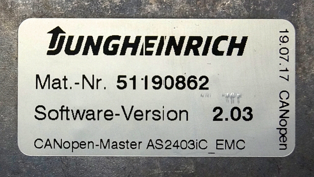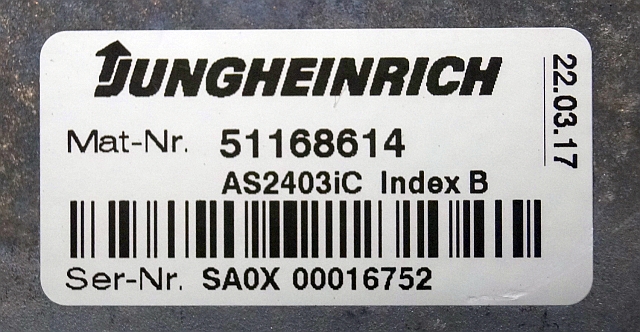 Jungheinrich 51168614 | Rij regeling Drive controller complete with internal charger AS2403iC index B Sw. 2,03 51190862 sn. SAOX00016752 from EMC year 2017
