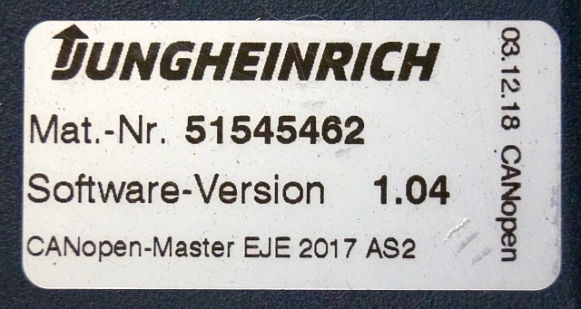 Jungheinrich 51204908 | Controller AS2405 i S Index A 51545462 Sw 1,04 sn. S1HX00010566 from EJE C20 2018