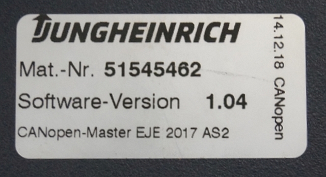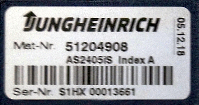 Jungheinrich 51204908 | Controller AS2405 i S Index A 51545462 Sw 1,04 sn. S1HX00013661 from EJE C20 2018