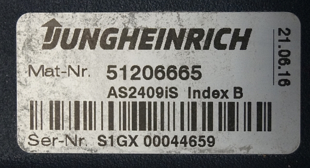 Jungheinrich 51206665 | Rij/hef regeling Drive/lift controller AS2409 i S Index B Sw. 1,06 51341849 from EJC B14 year 2016 sn. S1GX00044659