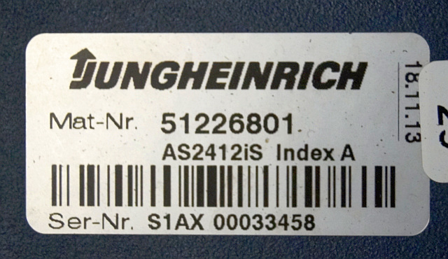 Jungheinrich 51226801 | Rij/hef/stuur regeling drive/lift/steering controller AS2412 i S index A Sw. 1,03 51263516 sn. S1AX00033458 from ERE225 FP year 2013