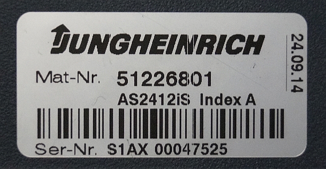 Jungheinrich 51226801 | Rij/hef/stuur regeling drive/lift/steering controller AS2412 i S index A Sw 2,05 51256852 sn. S1AX00047525 from ECE225 year 2014