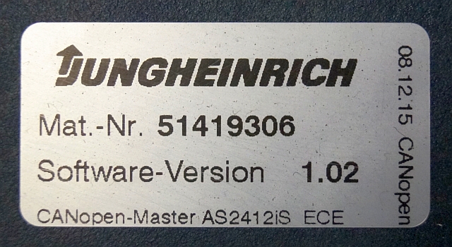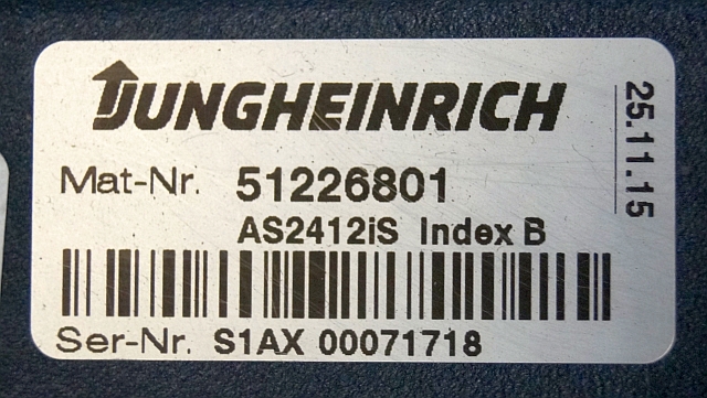 Jungheinrich 51226801 | Rij/hef/stuur regeling drive/lift/steering controller AS2412 i S index B Sw 1,02 51419306 sn. S1AX00071718 from ECE225 year 2016