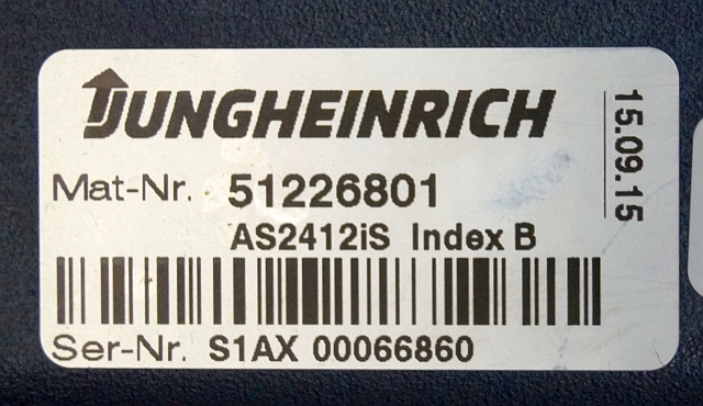 Jungheinrich 51226801 | Rij/hef/stuur regeling drive/lift/steering controller AS2412 i S index B Sw. 1,05 51263516 sn. S1AX00066860 from ERE225 fp year 2015