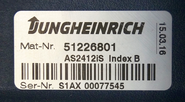 Jungheinrich 51226801 | Rij/hef/stuur regeling drive/lift/steering controller AS2412 i S index B Sw. 1,05 51263516 sn. S1AX00077545 from ERE225 year 2016