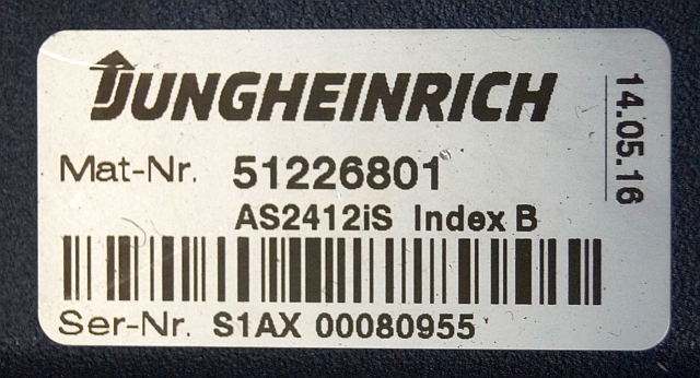 Jungheinrich 51226801 | Rij/hef/stuur regeling drive/lift/steering controller AS2412 i S index B Sw. 1,05 51263516 sn. S1AX0080955 from ERE225 year 2016