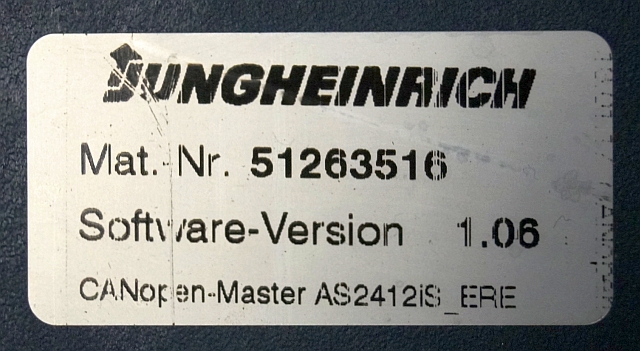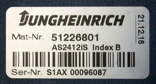 Jungheinrich 51226801 | Rij/hef/stuur regeling drive/lift/steering controller AS2412 i S index B Sw. 1,06 51263516 sn. S1AX00096087 from ERE225 fixed platform year 2017