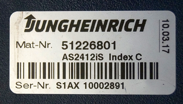 Jungheinrich 51226801 | Rij/hef/stuur regeling drive/lift/steering controller AS2412 i S index C sn. S1AX10002891 from ERE225 Fixed platform year 2017