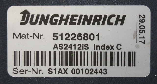 Jungheinrich 51226801 | Rij/hef/stuur regeling drive/lift/steering controller AS2412 i S index C Sw 1,02 51462874 sn. S1AX000102443 from ERE225 Drive + year 2017