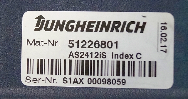 Jungheinrich 51226801 | Rij/hef/stuur regeling drive/lift/steering controller AS2412 i S index C Sw 1,06 51419306 sn. S1AX00098059 from ECE225 year 2017
