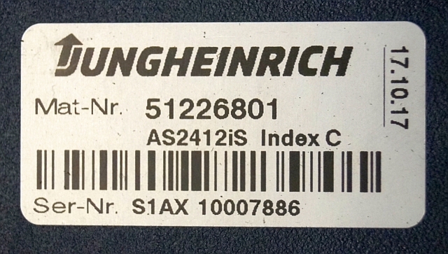 Jungheinrich 51226801 | Rij/hef/stuur regeling drive/lift/steering controller AS2412 i S index C Sw 1,09 51419306 sn. S1AX10007886 from ECE225 year 2017