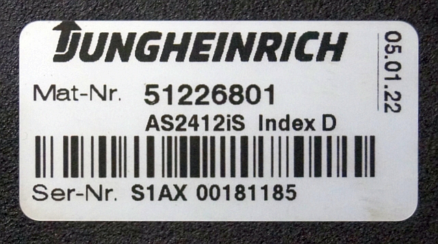 Jungheinrich 51226801 | Rij/hef/stuur regeling drive/lift/steering controller AS2412 i S index D Sw. 1,07 51263516 sn. S1AX00181185 from ERE225 fixed platform year 2015