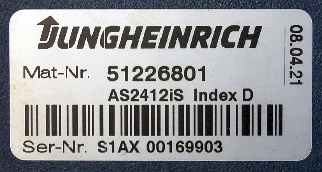Jungheinrich 51226801 | Rij/hef/stuur regeling drive/lift/steering controller AS2412 i S index D Sw 1,07 51462874 sn. S1AX00169903 from ERE225 fixed platform D/P year 2017