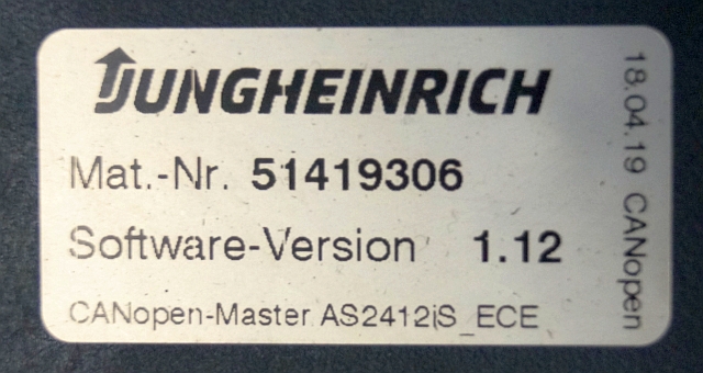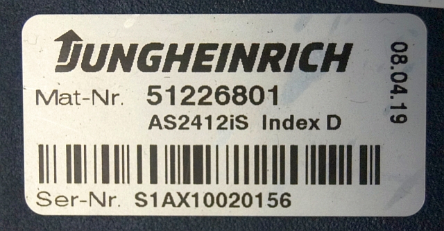Jungheinrich 51226801 | Rij/hef/stuur regeling drive/lift/steering controller AS2412 i S index D Sw 1,12 51419305 sn. S1AX10020156 from ECE225 year 2019