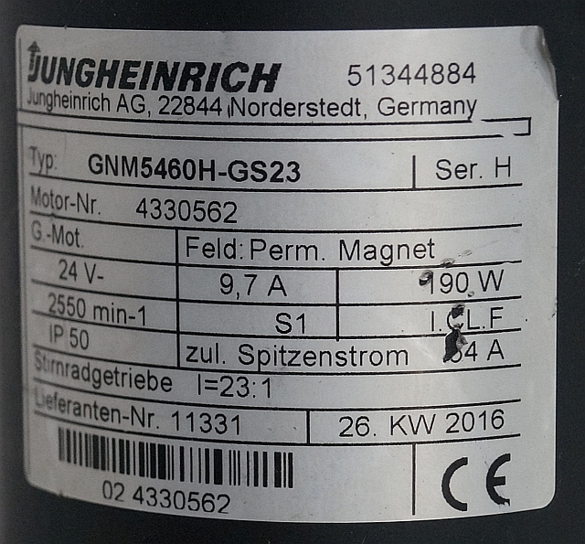 Jungheinrich 51344884 | Steering motor 24V type GNM5460H-GS23 sn 4330562
