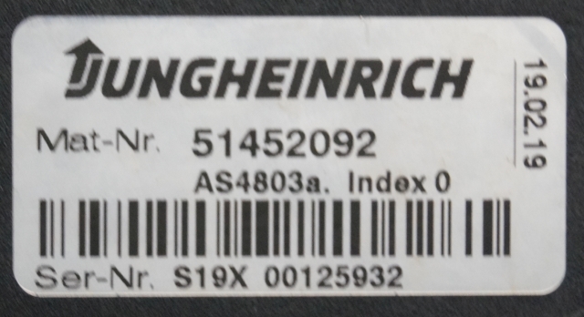 Jungheinrich 51452092 | Stuur regeling steering controller AS4803A index O sn. S19X000125932 from ETV214 year 2019