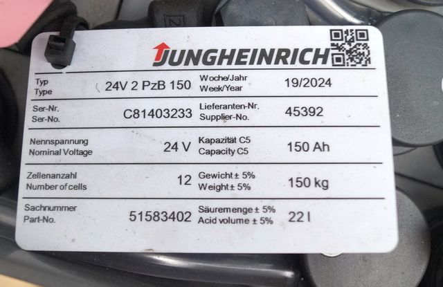 Jungheinrich unknown | Battery 24 2PZB150 year 2024 weight 150 kg sn. C81403233 outside measurement 660x145x595mm