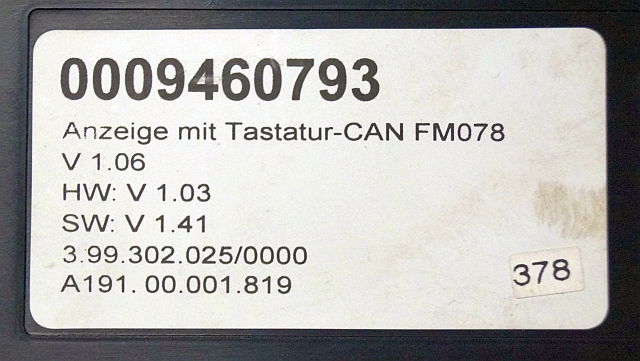 Display V1.06 HW 1,03 Sw. 1.41 399302025/0000 sn A191.00.001.819 from Still FMX14N year 2010