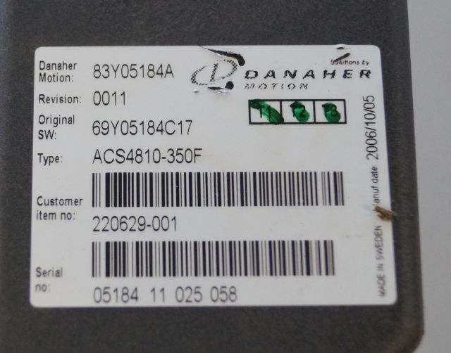 Toyota/BT 220629-001 | Danaher motion AC Superdrive motor controller 83Y05184A ACS4810-350F Rev 0011 sn. 0518411025058